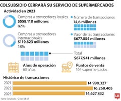 Colsubsidio anunció en noviembre de 2024 que cerrará su servicio de supermercados el 31 de diciembre de ese año. Con ello, daría por terminada una trayectoria de 63 años en el segmento y 104 puntos de venta dejarán de operar. La entidad reiteró que mantendrá las operaciones de su red de droguerías, los servicios de salud y los demás productos de la empresa como recreación, hotelería, turismo, salud, subsidios y vivienda. Frente al futuro de los colaboradores, Colsubsidio resaltó que no se contempla la cancelación de contratos.